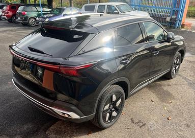 Omoda 5 1.6 TGDI 147 Cv Premium nuova da immatricolare colore Esterno Carbon Crystal BLACK interni similpelle con sedili sportivi con poggiatesta integrato con regolazione elettriche, riscaldati e ventilati ... allestimento Top tutto di serie(compreso vernice metallizzata) Fari Full Led anteriori e posteriori indicatori di direzione con effetto swipe, quadro strumenti digitale da 12,3"e Display centrale da 12,3" Hd con Apple CarPlay e Androide Auto e ricarica Wireless, ambiente luci interno anteriore e posteriore tettuccio apribile, motore benzina turbo iniezione diretta con 147Cv cambio automatico doppia frizione 7 rapporti con modalità di guida Eco/Sport/Normal.
