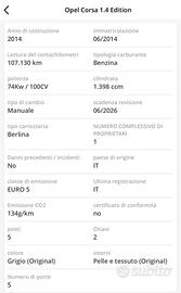 Chiamare per info appuntamento visione e prova Si riceve SOLO su appuntamento Opel Corsa 1.4 Benzina 100 Cv Euro 5 Guidabile anche da neopatentati Anno:6/2014 Km:107.300 Originali Il chilometraggio viene riportato in fattura Cambio manuale,Climatizatore,Vetri elettrici,Vetri posteriori oscurati di fabbrica,Volante in pelle multifunzionale,Radio cd mp3 aux,Kit ruota di scorta,Dopoie chiavi con telecomando,Ecc Vettura in OTTIME condizioni generali Possibilità finanziamento in sede Possibilità Garanzia completa 12/24/36 Mesi Ritiriamo il vostro usato anche se da rottamare Per più info chiamare