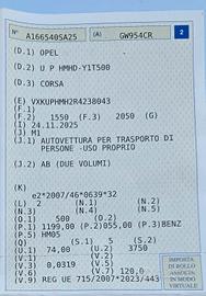 Opel corsa a benzina le cui caratteristiche sono descritte nella carta di circolazione allegata in foto