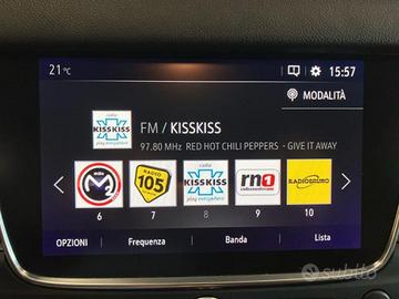 Altre opzioni: Cerchio in Lega 19" a 5 razze doppie, Diamond;Cinture di sicurezza anteriori con doppio pretensionatore;Cinture di sicurezza posteriori laterali con pretensionatore;Cornice superiore dei finestrini cromata;Info Display Plus a colori 4.2";Lane Departure Warning;Luci Diurne a LED anteriori e posteriori;Luci interne e spot light di lettura;Maniglie in tinta carrozzeria;OnStar - sistema di connettività e assistenza personale, che include i seguenti servizi: - Chiamata ;Opel Eye;Parabrezza riscaldabile;Pedaliera Sportiva;Plug Pack 2:- Presa da 230 V nella seconda fila - Presa da 12 V nel bagagliaio;Riconoscimento limiti di velocità;Sedile Guidatore AGR;Sight & Light Pack: - Sensore pioggia e luminosità- Specchietto retrovisore interno fotoelettrocroma;Sistema di controllo "angolo cieco";Sistema Open&Start : - Apertura/chiusura porte e portellone e avviamento senza luso della chiave;Skidplate anteriore e posteriore;Tetto black;Vetri posteriori oscurati;Winter Pack Plus:- Volante e sedili anteriori riscaldabili elettricamente- Sedili posteriori riscald;Wireless Smartphone Charging