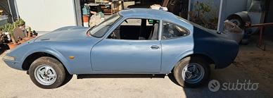 Opel GT anno 1969 – 1900cc completa, motore smontato per revisione e mai messo in moto. L'auto è a fondo per verniciatura e bisogna proseguire il restauro. Il veicolo è in buone condizioni generali, con fondi e lamierati solidi, ruggine superficiale. Targhe originali nere (solo anteriore) - radiata di ufficio del 1987 - documenti non presenti con denuncia smarrimento.