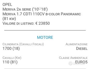 Vendo Opel Meriva 1.7 CDTI 110CV, auto comoda, spaziosa e dai consumi contenuti. Ideale per famiglia o per chi cerca un’auto versatile e affidabile.