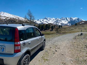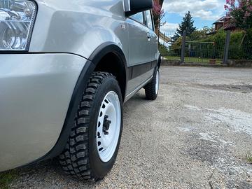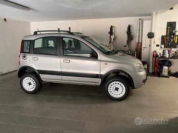 Vendo Panda 4x4 modello 169, 173000 km, appena revisionata, gomme tassellate Maxi Cervinia su cerchi bianchi appena verniciati o a scelta cerchi in lega grigio antracite con gomme termiche, ammortizzatori nuovi, molle nuove, distanziali 20mm posteriori, 16 anteriori, giunto prometeo che consente di viaggiare 4x2 o 4x4 (50ant/50post) con leva selettrice in abitacolo, autoradio 2 din Apple car play e Android auto, casse nuove, faretti supplementari led, luci led barre porta tutto. Appena tagliandata.
