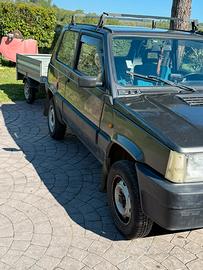 Come da titolo vendo panda 4x4 trekking anno immatricolazione 31/12/1991 cilindrata 1000, macchina con meccanica perfetta quattro gomme nuove la carrozzeria non ha segni di ruggine solo la vernice un po scolorita data l’età. Insieme alla macchina viene venduto anche il carrello appendice regolarmente riportato sul libretto del veicolo che è un cresci misure Interne 110x148 altezza sponde 34 con 2 ruote semi nuove piu’ ruota di scorta.Inoltre regalo insieme alla macchina uno scatolone di pezzi tra cui fanali posteriori completi specchietti retrovisori ecc ecc un paraurti posteriore nuovo e quattro cerchi non originali panda e quattro gomme