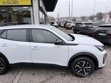 Climatizzatore automatico monozona, Plafoniera anteriore A-Dome 3 luci (1 abitacolo, 2 di lettura), Illuminazione del bagagliaio, Sedile lato guida regolabile manualmente in altezza, Volante compatto rivestito in pelle con comandi multimedia integrati, Pannelli porte anteriori con inserti effetto carbonio e modanatura nero opaco con serigrafia nero opaco, Plancia con inserti effetto carbonio e modanatura nero mat, Consolle bassa con freno di stazionamento a comando meccanico, Panchetta posteriore ribaltabile 1/3 - 2/3, 4 maniglie di ritenuta retrattili (2 anteriori, 2 posteriori), Peugeot connect one (SOS & assistance e teleservices), Pianale del bagagliaio standard, Protezioni laterali delle porte con inserti neri, Abitacolo e rivestimento del cielo nero, Appoggia braccia delle porte anteriori e posteriori in tessuto grigio, Calandra Nera con inserti a sviluppo orizzontale, Dettagli superiori in tinta carrozzeria,