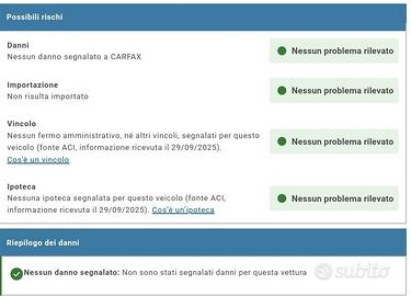 - VISURA CARFAX CHE DIMOSTRA L'ORIGINALITÀ DEL CHILOMETRAGGIO E L'ASSENZA DI INCIDENTI.