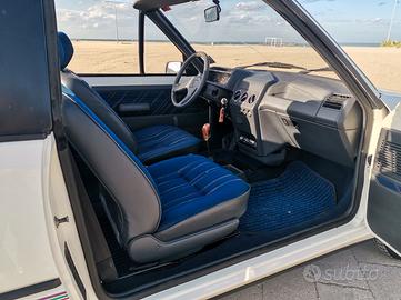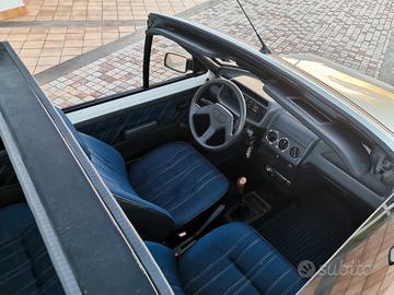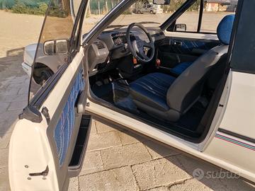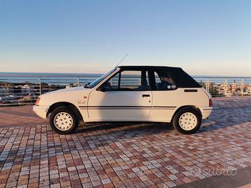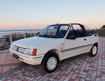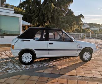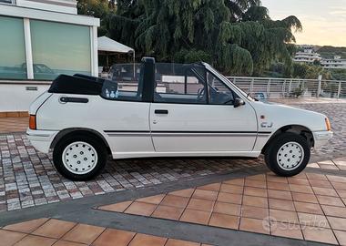 Peugeot 205 CJ cabriolet. Scattante motore TU 1.1 54cv nella rara versione a carburatore, mantenuta in modo maniacale. Cerchi in lega, gomme nuove, cinghia distribuzione fatta nel 2022 a 90.000km, sempre tagliandata, cappotta in ottime condizioni, interni jeans e livrea CJ perfetta.Manutenzione costantemente eseguita: ammortizzatori nuovi, semiassi nuovi, alternatore revisionato, sospensione posteriore revisionata con sostituzione cuscinetti e boccole, impianto frenante revisionato con sostituzione di dischi, pasticche e ganasce.Simpatica, agile e divertente. Pronta all'uso con tassa di circolazione non obbligatoria e assicurazione ridotta. Rarissima da trovare in queste condizioni.