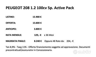Stupenda PEUGEOT 208 PureTech 100 S&S 5p. Active Pack, pari al nuovo con manutenzione regolare, unico proprietario.
