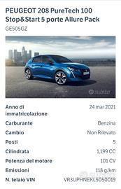 Versione208 PureTech 100 Stop&Start 5 porte Allure Pack