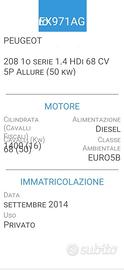 BELLISSIMA!! PEUGEOT 208-1,4 HDI- UNICA PROPRIETARIA- FOTO ULTIME 4 REVISIONI- L'AUTO HA PERCORSO CIRCA 8000 ALL'ANNO!!! OK NEOPATENTATI - KM 92000 "ASSOLUTAMENTE O-RI-GI-NA-LI" NIENTE TARGHE NASCOSTE!! QUALSIASI VERIFICA. SE RICHIESTO INVIO COPIA LIBRETTO CIRC. FOTO ULTIMA REVISIONE FATTA LI 09-2024 A KM 83000. CARROZZERIA TAPPEZZERIA E MECCANICA IN OTTIME CONDIZIONI. Cilindrata 1400 HDI, KW 50- CV 68. CRUIS CONTROL, CLIMATIZZATORE, ABS, AIRBAG, ANCHE LATERALI, COMANDI AL VOLANTE, RADIO TOUCH CON AUX-USB CARPLAY E TELEFONO, BLUETOOTH DI SERIE LETTORE CD NEL CASSETTO , COMPUTER, HILL HOLDER, sistema elettronico, gestito dall'ESP, che assiste automaticamente il guidatore nelle partenze in salita, ALZAVETRI ELETTRICI, SPECCHI ESTERNI ELETTRICI, TELECOMANDO APRIPORTA E 2' CHIAVE, SENSORE PRESSIONE GOMME, SEDILE POST. SDOPPIABILE, ISOFIX, RUOTA DI SCORTA, GOMME ESTIVE NUOVE.Interni molto curati, Igienizzati Professionalmente, N on Fumatore, scrupoloso controllo generale prima della consegna, 1 ANNO DI GARANZIA, QUALSIASI PROVA, TUTTA FINANZIABILE. -----ANCHE FINANZIAMENTO A RATE FINO A 5000,00 SENZA BUSTA PAGA, ANCHE SENZA NESSUN REDDITO!!!! La Nostra Attivita' ci coinvolge con una grande passione ultratrentennale. Facilmente Raggiungibili a 1km dall'uscita Tolentino Ovest della superstrada Civitanova Marche - Foligno. a 5 min. dalla Stazione FFSS di TOLENTINO.