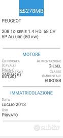 LLISSIMA!! PEUGEOT 208-1,4 HDI- UNICA PROPRIETARIA- FOTO ULTIME 4 REVISIONI- OK NEOPATENTATI - KM 123000 "ASSOLUTAMENTE O-RI-GI-NA-LI" NIENTE TARGHE NASCOSTE!! QUALSIASI VERIFICA. SE RICHIESTO INVIO COPIA LIBRETTO CIRC. ULTIMO TAGLIANDO OLIO E FILTRI FATTO APRILE 2025-- FOTO ULTIMA REVISIONE APPENA FATTA LI 10-2025 A KM 122000. CARROZZERIA TAPPEZZERIA E MECCANICA IN OTTIME CONDIZIONI. Cilindrata 1400 HDI, KW 50- CV 68. CRUIS CONTROL, CLIMATIZZATORE, ABS, AIRBAG, ANCHE LATERALI, COMANDI AL VOLANTE, RADIO TOUCH CON AUX-USB CARPLAY E TELEFONO, BLUETOOTH DI SERIE LETTORE CD NEL CASSETTO , COMPUTER, HILL HOLDER, sistema elettronico, gestito dall'ESP, che assiste automaticamente il guidatore nelle partenze in salita, ALZAVETRI ELETTRICI, SPECCHI ESTERNI ELETTRICI, TELECOMANDO APRIPORTA E 2' CHIAVE, SENSORE PRESSIONE GOMME, SEDILE POST. SDOPPIABILE, ISOFIX, RUOTA DI SCORTA, GOMME ESTIVE NUOVE.Interni molto curati, Igienizzati Professionalmente, Non Fumatore, scrupoloso controllo generale prima della consegna, 1 ANNO DI GARANZIA, QUALSIASI PROVA, TUTTA FINANZIABILE. -----ANCHE FINANZIAMENTO A RATE FINO A 5000,00 SENZA BUSTA PAGA, ANCHE SENZA NESSUN REDDITO!!!! La Nostra Attivita' ci coinvolge con una grande passione ultratrentennale. Facilmente Raggiungibili a 1km dall'uscita Tolentino Ovest della superstrada Civitanova Marche - Foligno. a 5 min. dalla Stazione FFSS di TOLENTINO.