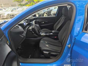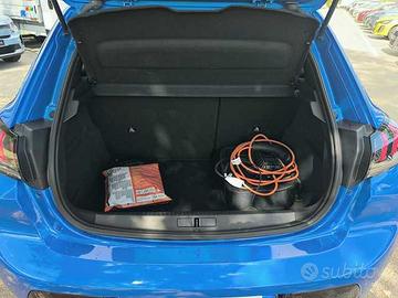 3D Connected Navigation 10" HD, Caricatore OBC (On Board Charger) 11 kW trifase, Keyless Access & Start, Tinta metallizzata, 1 maniglia interna per passeggero anteriore, 1 presa USB anteriore aggiuntiva di ricarica e 2 prese USB posteriori di ricarica, 2 fissaggi ISOFIX alle sedute laterali posteriori, 2 maniglie interne per passeggeri posteriori, ABS, REF e AFU, Accensione automatica luci di emergenza in caso di forte decelerazione, Active Safety Brake & Distance Alert, Airbag conducente e passeggero (con disattivazione a chiave), laterali e tendina, Artigli anteriori con DRL a Led, Badge specifico, Bocchette di ventilazione con profili cromati, Caricatore OBC (On Board Charger) 7,4 kW monofase, Cavo di ricarica domestica Tipo 2/EF presa Schuko con custodia dedicata, Cavo di ricarica T2 Modo 3 Trifase 22 kW, Chiusura automatica delle porte in marcia, Computer di bordo, Doppio porta lattine dietro il freno a mano e sotto la console centrale, Drive mode (normal/eco/sport), ESP e Hill Assist, Estrattore centrale nero lucido, Fari diurni alogeni, Fari posteriori a LED, Fascione nero lucido sul portellone posteriore, Freno di stazionamento elettrico con console alta e bracciolo anteriore centrale, Gear Shift Indicator (GSI) - indicatore cambio rapporti, Griglia calandra con dettagli in tinta carrozzeria, Indicatore perdita di pressione pneumatici, Interni in tessuto Cozy Grigio Antracite / Tep Nero Mistral, Kit di riparazione pneumatici, Maniglie esterne in tinta carrozzeria, Maniglie interne apertura porte cromate, Modanature del passaruota nero lucido, Pannelli porta con cuciture e dettagli Azzurro, Peugeot Connect SOS & Assistance, Plancia con inserto cromato, Quadro strumenti con display centrale a colori 3,5", Retrovisore interno elettrocromatico, Retrovisori esterni con indicatori di direzione integrati, Retrovisori esterni nero lucido, Sensori di parcheggio posteriori con Visiopark 180°, Spoiler posteriore nero lucido, Toggles switches con profilo cromato, Tou.