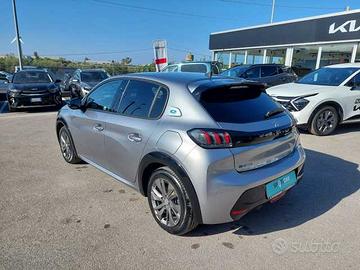 PREZZO DI LISTINO 39.200€, QUESTO MESE CON "PROMO ESATTAMENTE", A fronte di ritiro usato da rottamare - 6.000€ Senza rottamazione 30.400€, AUTOVETTURA IDONEA PER NEOPATENTATI, Tinta metallizzata, 1 maniglia interna per passeggero anteriore, 1 presa USB anteriore aggiuntiva di ricarica e 2 prese USB posteriori di ricarica, 2 fissaggi ISOFIX alle sedute laterali posteriori, 2 maniglie interne per passeggeri posteriori, ABS, REF e AFU, Accensione automatica luci di emergenza in caso di forte decelerazione, Active Safety Brake & Distance Alert, Airbag conducente e passeggero (con disattivazione a chiave), laterali e tendina, Artigli anteriori con DRL a Led, Badge specifico, Bocchette di ventilazione con profili cromati, Caricatore OBC (On Board Charger) 7,4 kW monofase, Cavo di ricarica domestica Tipo 2/EF presa Schuko con custodia dedicata, Cavo di ricarica T2 Modo 3 Trifase 22 kW, Chiusura automatica delle porte in marcia, Computer di bordo, Doppio porta lattine dietro il freno a mano e sotto la console centrale, Drive mode (normal/eco/sport), ESP e Hill Assist, Estrattore centrale nero lucido, Fari diurni alogeni, Fari posteriori a LED, Fascione nero lucido sul portellone posteriore, Freno di stazionamento elettrico con console alta e bracciolo anteriore centrale, Gear Shift Indicator (GSI) - indicatore cambio rapporti, Griglia calandra con dettagli in tinta carrozzeria, Indicatore perdita di pressione pneumatici, Interni in tessuto Cozy Grigio Antracite / Tep Nero Mistral, Kit di riparazione pneumatici, Maniglie esterne in tinta carrozzeria, Maniglie interne apertura porte cromate, Modanature del passaruota nero lucido, Pannelli porta con cuciture e dettagli Azzurro, Peugeot Connect SOS & Assistance, Plancia con inserto cromato, Quadro strumenti con display centrale a colori 3,5", Retrovisore interno elettrocromatico, Retrovisori esterni con indicatori di direzione integrati, Retrovisori esterni nero lucido, Sensori di parcheggio posteriori con Visiopark 180°, Sp
