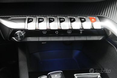 Sedili Conducente E Passeggero Regolabili In Altezza, Volante multifunzione in pelle pieno fiore, Volante regolabile in altezza e profondità, Appoggia gomiti centrale anteriore con vano portaoggetti, Climatizzatore automatico bi-zona con aeratori posteriori, MirrorScreen (CarPlay, Android Auto), Palette Al Volante, Sedile posteriore con poggiabraccio centrale, vano passaggio sci e sistema rapido di abbattimento, Keyless Start, Kit di riparazione pneumatici, decori plancia carbon look, Mascherina anteriore senza cornice, Peugeot i-Cockpit con Head-up Digital Display 12,3", Chiusura Centralizzata Porte Con Telecomando, Touchscreen capacitivo 8" (radio trituner con comandi al volante), Radio DAB, Cerchi in lega da 17" Chicago, Prese 12 V (x3: anteriore, posteriore, bagagliaio), REF, Profili vetratura neri, Conchiglie specchietti retrovisori Nero Perla, Retrovisori esterni ribaltabili elettricamente con illuminazione a LED, Retrovisori Esterni Riscaldabili E A Regolazione Elettrica, Proiettori anteriori Peugeot LED Technology, Fari posteriori Full LED 3D, Fari DLR LED ad "artiglio" con estremità inferiore cromata, Interni in tessuto Meco Mistral, Pack Visibilità, Time Drive Control, ABS, Airbag conducente, Airbag passeggero (con disattivazione a chiave), Airbag laterali doppi, Airbag a tendina (due), ESP, Regolatore e limitatore di velocità programmabile, Indicatore perdita pressione pneumatici, Active Safety Brake & Distance Alert, AFU, Fissaggi ISOFIX seggiolino bambini (1 anteriore passeggero, 2 posteriori laterali), Cinture di sicurezza a pretensione pirotecnica con limitatore di sforzo, regolabili in altezza, con tre punti di ancoraggio, Extended Traffic Sign Recognition, Active Lane Departure Warning, Freno di stazionamento elettrico e Hill Assist, Assistente abbaglianti,