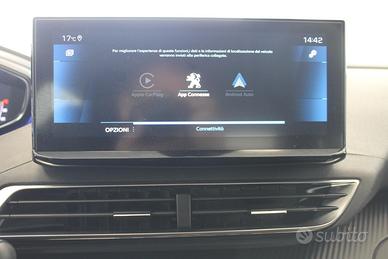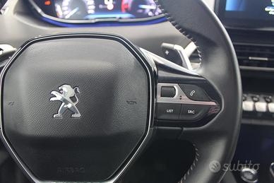 Sedili Conducente E Passeggero Regolabili In Altezza, Volante multifunzione in pelle pieno fiore, Volante regolabile in altezza e profondità, Appoggia gomiti centrale anteriore con vano portaoggetti, Climatizzatore automatico bi-zona con aeratori posteriori, MirrorScreen (CarPlay, Android Auto), Palette Al Volante, Sedile posteriore con poggiabraccio centrale, vano passaggio sci e sistema rapido di abbattimento, Keyless Start, Kit di riparazione pneumatici, decori plancia carbon look, Mascherina anteriore senza cornice, Peugeot i-Cockpit con Head-up Digital Display 12,3", Chiusura Centralizzata Porte Con Telecomando, Touchscreen capacitivo 8" (radio trituner con comandi al volante), Radio DAB, Cerchi in lega da 17" Chicago, Prese 12 V (x3: anteriore, posteriore, bagagliaio), REF, Profili vetratura neri, Conchiglie specchietti retrovisori Nero Perla, Retrovisori esterni ribaltabili elettricamente con illuminazione a LED, Retrovisori Esterni Riscaldabili E A Regolazione Elettrica, Proiettori anteriori Peugeot LED Technology, Fari posteriori Full LED 3D, Fari DLR LED ad "artiglio" con estremità inferiore cromata, Interni in tessuto Meco Mistral, Pack Visibilità, Time Drive Control, ABS, Airbag conducente, Airbag passeggero (con disattivazione a chiave), Airbag laterali doppi, Airbag a tendina (due), ESP, Regolatore e limitatore di velocità programmabile, Indicatore perdita pressione pneumatici, Active Safety Brake & Distance Alert, AFU, Fissaggi ISOFIX seggiolino bambini (1 anteriore passeggero, 2 posteriori laterali), Cinture di sicurezza a pretensione pirotecnica con limitatore di sforzo, regolabili in altezza, con tre punti di ancoraggio, Extended Traffic Sign Recognition, Active Lane Departure Warning, Freno di stazionamento elettrico e Hill Assist, Assistente abbaglianti,