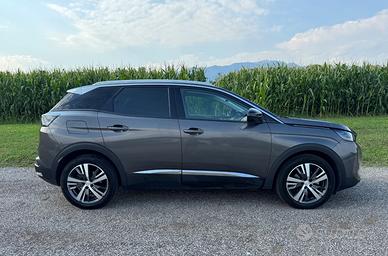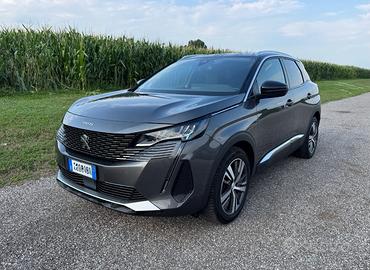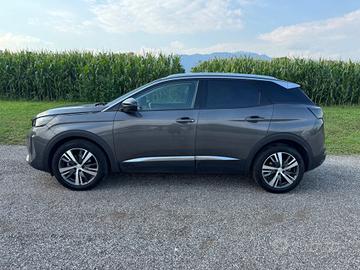 Peugeot 3008 Allure Pack 1.5 Diesel BluHDI 130 cavalli, immatricolata ad Aprile 2021 in perfette condizioni, unico proprietario, tagliandi sempre eseguiti regolarmente, full optional, sedili in pelle e tessuto nero, cerchi in lega da 18 con gomme 4 stagioni, cambio manuale 6 rapporti, controllo di trazione automatico, computer di bordi, cruscotto digitale (Peugeot i-Cockpit), sistema di infotainment con touchscreen, sensori parcheggio anteriori e posteriori con telecamera posteriore e 360 gradi, sensore pioggia, sensori luce, fari full led automatici, clima automatico bi zona, cruise control, start and stop, specchietti retrovisori con regolazione e chiusura elettrica, luci abitacolo, chiusura e apertura senza chiave, keyless sistem, volante in pelle multifunzione, prese usb e uscita aux, barre tetto cromate, fendinebbia, monitoraggio pneumatici, anti appannamento, tenuta sempre al coperto, non fumatore