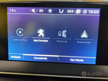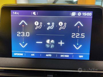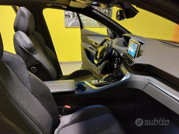 Tasche nel retro dei sedili anteriori, Illuminazione interna anteriore (con due luci di lettura) e posteriore, Luci di lettura posteriori (x2), Sedile conducente con regolazione lomabre, Sedile conducente regolabile in altezza, Sedile passeggero regolabile in altezza, Sedile Passeggero Ripiegabile In Avanti, SEDILE POSTERIORE FRAZIONABILE 2/3 - 1/3, Volante In Pelle Pieno Fiore, Volante in pelle traforata pieno fiore con logo GT Line, Volante regolabile in altezza e profondità, Appoggiagomiti centrale anteriore con vano portaoggetti refrigerato ed illuminato, Cassetto portaoggetti illuminato, Specchietti di cortesia con illuminazione a LED, Battitacco cromati, Inserto pannello di comando alzacristalli in cromato satinato, Profilo padiglione cromato, Consolle centrale con due portabicchieri, Rivestimento del "cielo" nero, Tappetini anteriori e posteriori, Coprivano Bagagli, Climatizzatore automatico bi-zona con aeratori posteriori, Appoggiagomiti portiere e tunnel centrale TEP mistral o guernade, Appoggiagomiti posteriore e vano portasci, MirrorScreen, Passaruota (colore antracite scuro satinato), Pedaliera Sportiva In Alluminio, Palette al volante (versioni cambio EAT6 / automatico), Kit di riparazione pneumatici, i-Cockpit Amplify (comprende: Drive Sport Pack, diffusore fragranze, animazione acustica e intensità dell'illuminazione, massaggio in caso di opzione Massage Pack),