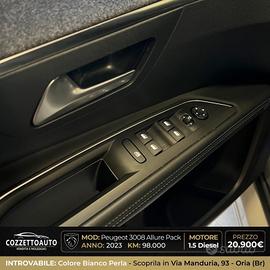 Peugeot 3008 Bianco perla anno 2023 unico proprietario 1.5 diesel 130cv allestimento Allure Pack perfette condizioni iva deducibile full optional pronta consegna COZZETTOAUTO Il tuo usato pari al nuovo VENDITA AUTO E VEICOLI COMMERCIALI ORIA (BR) Puglia Venditore: Tagliando completo di preconsegna e controllo generale Garanzia Conformgest con soccorso stradale H24 Auto certificate in contratto e fattura Lavaggio accurato di preconsegna Installazione antifurto Finanziamento a tasso agevolato Ritiriamo la vostra permuta