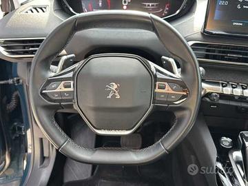 ABS, ESP, REF e AFU (con Hill Assist), Accensione automatica luci di emergenza in caso di forte decelerazione, Airbag conducente e passeggero (con disattivazione a chiave), laterali doppi + a tendina (due), Alzacristalli ant./post. elettrici antipizzicamento, comando sequenziale, Ambient LED Pack, Decori plancia di bordo e pannelli delle porte in tessuto trama "Brumeo" (o "Texa"), Fari posteriori Full LED 3D, Fissaggi ISOFIX seggiolino bambini (1 anteriore passeggero, 2 posteriori laterali), Freno di stazionamento elettrico e Hill Assist, Indicatore perdita di pressione pneumatici, Interni in Misto TEP/tessuto Colyn Mistral, Kit di riparazione pneumatici, Mascherina anteriore senza cornice, Pack safety plus, Pack Visibilità, Palette cambio al volante, Pedaliera sportiva in alluminio, Peugeot Connect SOS & Assistance, Prese 12V (x3), Profili finestrini cromati, Profili vetratura neri, Sedile conducente con regolazione lombare, Sedile passeggero ripiegabile in avanti, Sensori di parcheggio anteriori, Specchietti di cortesia con illuminazione a LED, Time Drive Control, Touchscreen capacitivo da 10" HD Connected Navigation con servizio Speedcam, Vetri posteriori e lunotto oscurati, Volante multifunzione in pelle pieno fiore, Lane Departure Warning, Appoggiagomiti centrale anteriore con vano portaoggetti, Cambio automatico a 8 marce, Cerchi in lega 18" Detroit Grigio Storm, Chiusura centralizzata con telecomando, Climatizzatore automatico bi-zona con aeratori posteriori, Mirror screen (Apple CarPlay, Android Auto), Regolatore e limitatore di velocità programmabile, Fari DRL LED ad artiglio con estremità inferiore cromata, Active Safety Brake (con distance alert), Peugeot I-Cockpit con Head-up Digital Display 12,3", Keyless Access & Start, Cinture di sic. ant./post. con pretensionatore, limit. di sforzo, reg. in altezza, 3 punti ancorag., Radio DAB, Retrovisori esterni riscaldabili e regolabili elettricamente, Retrovisori richiudibili elettricamente con illuminazio