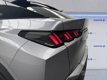 Dotazioni extra: Kit di emergenza pneumatico , Vernice metallizzata, Cerchi in lega da 19'' Breda Orbital Black finitura lucida, Climatizzatore automatico bi-zona, VisioPark 1 (Sensori di parcheggio posteriori + Retrocamera HD 180°), Vetri post. e lunotto oscurati, Keyless entry con funzione di prossimità, Panoramic Navigation pack comprende:, - 3D Connected Navigation, - Peugeot Panoramic i Cockpit con Display sospeso da 21" HD curvo, - Wireless Smartphone Charging (15 W), - Riconoscimento comandi vocali , - Servizi connessi TomTom , -3 USB: 1 USB-C (Dati & Ricarica) Anteriore e 2 USB posteriori.