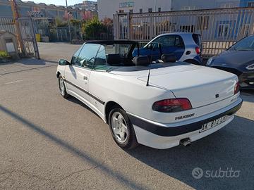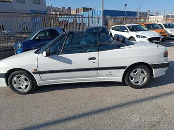 Peugeot 306 1.8 i Cabriolet immatricolata il 09 Gennaio del 1996 con 174000 km dimostrabili, auto perfettamente funzionante in tutto, cappotta elettrica funzionante, telo cappotta integro senza alcun segno di usura. Auto molto bella, tenuta benissimo e di sicura rivalutazione negli anni, design Pininfarina. Già iscritta ASI con certificato di rilevanza storico riportato a libretto. Già trentennale perciò non paga il bollo Sedile guida reg. in altezza e lombare, Volante reg. in altezza, Interruttore inerziale, Antiavviamento codificato (Immobilizzatore), Chiusura centralizzata con telecomando, Cambio manuale a 5 marce, Cerchi in lega, Retrovisori termici reg. elettricamente, Correttore assetto fari, Airbag guida, Servosterzo, Pretensionatore cinture anteriori, Indicatore temperatura esterna, Capote reclinabile elettr., Vetri el. ant., Vetri el. post., Climatizzatore Manuale, Interno pelle, ABS, Airbag passeggero,