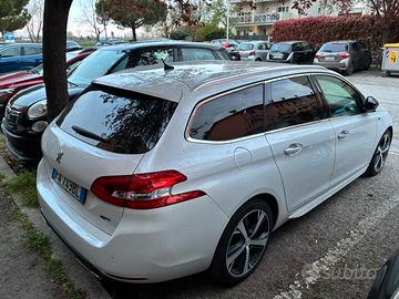 Peugeot 308 gt Bianco perlato sensori anteriori e posteriori schermo touchscreen retrocamera specchietti eletrici sedili pelle alcantara volante piccolo multifunzione cerchi da 18 distribuzione fatta a 190000 libretto service tagliandata sempre peugeot dimostrbili tanti optional come cruise control adattivo unico lavoro da fare ammortizzatore anteriori spesa di 200 euro il prezzo e trattabile
