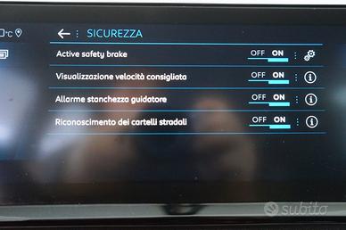 ABS, Airbag, Airbag laterali, Airbag Passeggero, Airbag testa, Alzacristalli elettrici, Android Auto, Apple CarPlay, Autoradio, Autoradio digitale, Bluetooth, Bracciolo, Cerchi in lega, Chiusura centralizzata, Chiusura centralizzata telecomandata, Climatizzatore automatico, 2 zone, Controllo elettronico della corsia, Controllo trazione, Controllo vocale, Cruise Control, Fari LED, Filtro antiparticolato, Frenata d'emergenza assistita, Freno di stazionamento elettrico, Head-up display, Hill holder, Immobilizzatore elettronico, Isofix, Key Less-go, Kit antipanne, Leve al volante, Limitatore di velocità, Luci diurne, Monitoraggio pressione pneumatici, Park Distance Control, Riconoscimento dei segnali stradali, Schermo multifunzione interamente digitale, Sedile posteriore sdoppiato, Sensore di luce, Sensore di pioggia, Sensori di parcheggio anteriori, Sensori di parcheggio posteriori, Servosterzo, Sistema Collision Prevention Assist, Sistema di chiamata d'emergenza, Sistema di navigazione, Sistema 'Lane Departure Warning', Specchietti laterali elettrici, Start/Stop Automatico, Streaming musicale integrato, Telecamera per parcheggio assistito, Touch screen, USB, Vivavoce, Volante in pelle, Volante multifunzione