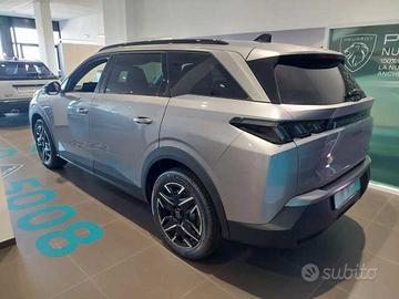Autovettura KM0, 3 prese 12 V (console centrale, parte posteriore console centrale, bagagliaio), 4 Maniglie interne al tetto, 6 Airbags (frontali, laterali, a tendina anteriori e posteriori), 6 altoparlanti, Alzacristalli anteriori e posteriori elettrici antipizzicamento con comando sequenziale, Bagagliaio posteriore con pianale regolabile su due livelli, Fari posteriori LED con firma luminosa a tre artigli, Fascia nera lucida tra i fari posteriori con scritta PEUGEOT, Fascia nera lucida tra i proiettori anteriori con logo 5008, Finestrini laterali posteriori e lunotto oscurati, Fissaggi ISOFIX e Top Tether per i posti laterali posteriori, Freno a mano elettrico, Griglia ant. in tinta carrozzeria, prese d'aria lat. nere lucide, decorazione inferiore Meteor Grey, Illuminazione LED parte inferiore zona piedi, Luci di lettura anteriori e posteriori a LED, Mancorrenti longitudinali sul tetto in nero lucido, Padiglione e ambiente interno nero, Panca scorrevole 2a fila (60/40), 3 schienali reclinabili (40/20/40), funzione Easy Access 3a fila, Parabrezza laminato acustico, Paraurti posteriori con decori Meteor Grey e parte inferiore in plastica nera opaca, PEUGEOT i -Connect, Peugeot Panoramic i Cockpit con doppio Display HD flottante (2x10''), Portaoggetti plancia e portaoggetti tunnel centrale illuminati a LED, Protezioni inferiori porta e passaruota in plastica nera opaca, Retrovisore interno elettrocromico, Retrovisori ripiegabili elettricamente e riscaldabili con luci di cortesia, Rivestimento sedili in tessuto in rilievo Crispy, TEP Isabella, dettagli in tessuto Rimini, Safety Plus Pack, Spoiler posteriore in tinta carrozzeria, VisioPark 1, Volante compatto in pelle con comandi integrati nero lucido, decorazioni Stene Grey, Cambio automatico a 6 marce, Cerchi in lega 18" diamantati "Maya", Orbital Black con finitura lucida, Climatizzatore automatico Tri-zona, ESP con aiuto alla partenza in salita, Proiettori Peugeot Full Led Technology con firma luminosa a tre art