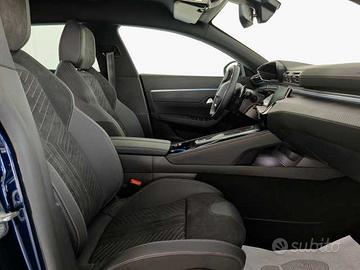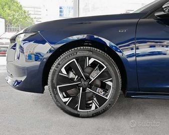 Vernice metallizzata Blu Eclipse, 6 Airbags (frontali, laterali, a tendina), Alzacristalli con inserti cromati, Badge "GT" in grigio Basalto sui montanti posteriori e portellone posteriore, Barre al tetto longitudinali in alluminio, Blocco finestrini posteriore per sicurezza bambini, Calotte specchietti retrovisori in nero lucido, Chiusura automatica porte quando la vettura è in movimento, Cielo abitacolo in tessuto nero, Cofano attivo per sicurezza pedoni, Doppio cavo di ricarica, Drive Assist Plus Pack, Driving Mode selector : Eco/Normal/Sport, ESC - Electronic Stability Control, Fari posteriori Full LED con indicatori di direzione dinamici, Firma Peugeot posteriore in nero, Freno di stazionamento elettrico e Hill Assist, Illuminazione d'ambiente blu su plancia di bordo, pannelli porte e console centrale, Indicatore perdita di pressione pneumatici, Interni Misto TEP/Alcantara con cuciture Akinite, Kit riparazione pneumatici, Modanatura cruscotto e pannelli porta effetto Carbonio, console centrale in nero lucido, Parte inferiore paraurti anteriore in Nero lucido, Pedaliera in alluminio, Peugeot i-Connect Advanced, Prese 12V (x2) - 1 nella console cenrale anteriore / 1 nel bagagliaio, Prese USB-A in seconda fila (x2) - Nel retro della console centrale: x2 Ricarica, Prese USB-C in prima fila (x2) - Nel bracciolo: x1 Ricarica + Dati (mirroring) / x1 Ricarica, Profili vetratura in nero lucido, Pulsantiera "a pianoforte" per accedere rapidamente alle funzioni del Touch Screen, Punti di fissaggio ISOFIX nei sedili laterali posteriori, Retrovisore interno frameless, Retrovisore laterale conducente elettrocromico, Retrovisori riscaldabili, a reg. el., richiudibili el. con illuminaz. a LED e indicat. angolo cieco, Safety Plus Pack, Sedili anteriori certificati AGR riscaldabili, Selettore cambio automatico "e-Toggle", Sensori di parcheggio anteriori e posteriori + laterali (flank guard), Soglie d'ingresso in alluminio con logo "PEUGEOT" nero, Time Drive Control, Vetr
