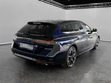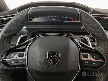 Vernice metallizzata Blu Eclipse, 6 Airbags (frontali, laterali, a tendina), Alzacristalli con inserti cromati, Badge "GT" in grigio Basalto sui montanti posteriori e portellone posteriore, Barre al tetto longitudinali in alluminio, Blocco finestrini posteriore per sicurezza bambini, Calotte specchietti retrovisori in nero lucido, Chiusura automatica porte quando la vettura è in movimento, Cielo abitacolo in tessuto nero, Cofano attivo per sicurezza pedoni, Doppio cavo di ricarica, Drive Assist Plus Pack, Driving Mode selector : Eco/Normal/Sport, ESC - Electronic Stability Control, Fari posteriori Full LED con indicatori di direzione dinamici, Firma Peugeot posteriore in nero, Freno di stazionamento elettrico e Hill Assist, Illuminazione d'ambiente blu su plancia di bordo, pannelli porte e console centrale, Indicatore perdita di pressione pneumatici, Interni Misto TEP/Alcantara con cuciture Akinite, Kit riparazione pneumatici, Modanatura cruscotto e pannelli porta effetto Carbonio, console centrale in nero lucido, Parte inferiore paraurti anteriore in Nero lucido, Pedaliera in alluminio, Peugeot i-Connect Advanced, Prese 12V (x2) - 1 nella console cenrale anteriore / 1 nel bagagliaio, Prese USB-A in seconda fila (x2) - Nel retro della console centrale: x2 Ricarica, Prese USB-C in prima fila (x2) - Nel bracciolo: x1 Ricarica + Dati (mirroring) / x1 Ricarica, Profili vetratura in nero lucido, Pulsantiera "a pianoforte" per accedere rapidamente alle funzioni del Touch Screen, Punti di fissaggio ISOFIX nei sedili laterali posteriori, Retrovisore interno frameless, Retrovisore laterale conducente elettrocromico, Retrovisori riscaldabili, a reg. el., richiudibili el. con illuminaz. a LED e indicat. angolo cieco, Safety Plus Pack, Sedili anteriori certificati AGR riscaldabili, Selettore cambio automatico "e-Toggle", Sensori di parcheggio anteriori e posteriori + laterali (flank guard), Soglie d'ingresso in alluminio con logo "PEUGEOT" nero, Time Drive Control, Vetr