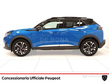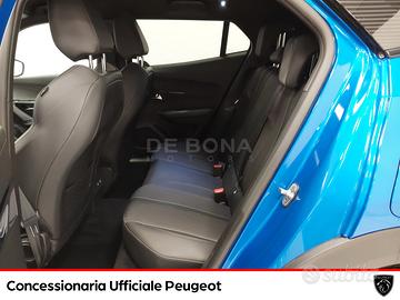 1 presa USB anteriore aggiuntiva di ricarica e 2 prese USB posteriori di ricarica, 3D Connected Navigation 10" HD, A LED + CORNERING LI, ABS, REF e AFU, Accensione automatica luci di emergenza in caso di forte decelerazione, Airbag conducente/passeggero (con comando di disattivazione)/laterali anteriori/a tendina, Alzacristalli anteriori e posteriori elettrici sequenziali con funzione antipizzicamento, Appoggiatesta posteriori, Autonomous Emergency Braking System 3 (AEBS 3), Autoradio, Badge dedicati e-2008, Badge GT, Barre al tetto nero brillante, Battitacco anteriore in alluminio, Blind Corner Assist (sistema di monitoraggio dell'angolo cieco della vettura), Cambio automatico, Caricatore OBC (On Board Charger) 7,4 kW monofase, Cavo di ricarica domestica Tipo 2/EF presa Schuko, Cavo di ricarica T2 Modo 3 Trifase 22 kW con custodia dedicata, Cerchi in lega, Chiave con transponder, Chiusura centralizzata, Climatizzatore, Controllo automatico velocità, Correttore assetto fari, Distance Alert, Drive mode (normal/eco/sport), Driver Attention Alert, ESP e Hill Assist, Fari anteriori a LED, Fari posteriori con firma LED a tre artigli, Fissaggi ISOFIX nelle sedute post. laterali, Fissaggio ISOFIX sedile passeggero anteriore, Frenata automatica di emergenza, Freno di stazionamento elettrico con console alta e bracciolo anteriore centrale, Griglia calandra specifica con dettagli nero lucido a sviluppo verticale, High Beam Assist, Illuminazione d'ambiente in 8 colori sulla plancia e sui pannelli porta, Immobilizzatore, Indicatore perdita di pressione pneumatici, Indicatore temperatura esterna, Inserto grigio alluminio spoiler paraurti anteriore, Interni in tessuto Capy Nero / Tep Nero Mistral, Keyless Start, Kit di riparazione pneumatici, Lane Keeping Assist, Logo "GT" sulle fiancate, Logo del Leone cangiante, Maniglie esterne e retrovisori est