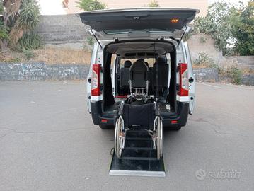 Peugeot Expert con pianale ribassato adibito al trasporto disabili. Anno 02.2015, motore diesel euro 5, cilindrata 2.00 72 kw, cambio manuale 6 marce, lunghezza 5.1 m, 113.000 km, 21.900€