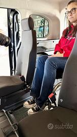Allestimento iMobility con pianale ribassato, rampe integrata e sistema di ancoraggio per la carrozzina.