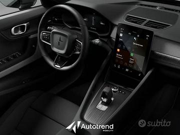 POLESTAR 2 Long Range Single Motor RWD 82kWh Prime PackScopri le promozioni con i nostri consulenti per Noleggio, Leasing o FinanziamentoAutovettura dotata di:- Cavo di ricarica AC per wallbox pubblici/domestici (2B / 6m / IEC 3P 400V 16A 11kW / Modalità 3)- Plus pack- 3 anni Polestar Connect & Roadside assistance- 3 anni di connettività- 3 anni di servizio incluso- 4 portabicchieri (i vani delle porte anteriori sono adatti alle bottiglie)- 5 stelle Euro NCAP- 8 airbag- ACC (controllo della velocità adattivo)- ADAS (Advanced Driver Assistance Systems)- AVAS (Acoustic Vehicle Alert System)- Agganci ISOFIX sui sedili posteriori e passeggero anteriore- Aggiornamenti Over-the-air (OTA)- Allarme con sensori di inclinazione e movimento interno- Android Automotive OS - Google Built in (Assistente Google, Google Maps, Google Play Store)- App integrate nell'auto- Apple Carplay- Assistenza al parcheggio (360°)- Barra luminosa posteriore Full-LED con firma luminosa persistente e funzione di oscuramento auto.- Blocco sicurezza bambini elettrico nelle porte posteriori- Bluetooth- Caricatore di bordo fino a 11 kW di ricarica AC- Caricatore di bordo fino a 205 kW di ricarica DC- Cerchi in lega da 19" Aero- Chiavi (2)- Clean Zone- Climatizzatore automatico 2 zone- Compartimento di stivaggio anteriore da 41 litri- Compartimento di stivaggio posteriore da 448 litri, incluso il vano da 41 litri sotto il pavimento- Disattivazione per l'airbag del passeggero- E-Sim integrata nel veicolo con connessione internet 4G- Emblema Polestar coordinato al colore carrozzeria- Fari abbaglianti automatici LED ON/OFF- Forza dello sterzo regolabile su tre livelli- Garanzia secondo le specifiche del mercato- Guida con un solo pedale (frenata rigenerativa)- Illuminazione interna di medio livello- Keyless entry and drive- Kit di primo soccorso- Kit di riparazione pneumatici-