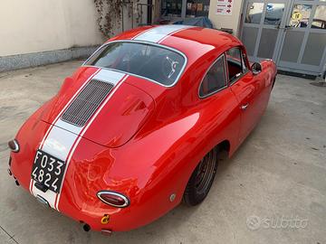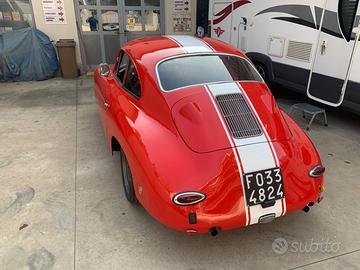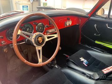 Stupenda Porsche 356 BT5 con motore 1600 da 75 cavalli (no matching number). Striscia bianca adesiva, macchina con kit "rally" (roll-bar smontabile e sedili sportivi). Targa originale.