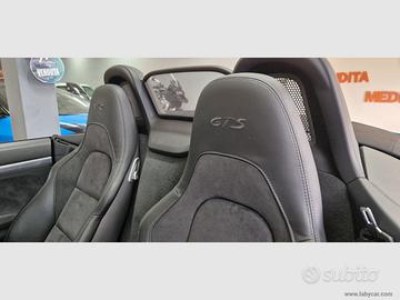 PORSCHE 718 GTS SPIDER PDK 366CV 2019 SOLO 49.900 KM **AUTO VISIBILE SU APPUNTAMENTO PRESSO LA SEDE DI FONTE NUOVA** **AUTO UNICA PER CONFIGURAZIONE E COLORE (BLU MIAMI)** **GARANZIE E FINANZIAMENTI IN SEDE** **CERTIFICATA PORSCHE** **TENUTA MANIACALMENTE** **VIDEO DISPONIBILI** la Porsche 718 GTS spider è l'equilibrio perfetto tra prestazioni brutali e agilità chirurgica grazie al motore centrale da 365 CV. Estetica mozzafiato con dettagli Total Black, interni in Alcantara e il pacchetto Sport Chrono per un’esperienza di guida pura e adrenalinica. Un esemplare impeccabile, nato per chi non accetta compromessi tra eleganza quotidiana e DNA da pista. Non è solo un’auto, è l’essenza del piacere di guida Porsche: pronta a scatenarsi a colpi di accelleratore e cambiate da GT! ALCUNI OPTIONAL: COLORAZIONE BLU MIAMI PACCHETTO CHRONO PACCHETTO BLACK ( DETTAGLI ESTERNI TOTALBLACK) FARI FULL LED ANT E POST SOSPENZIONI PASM VARIABILI INTERNI PELLE E ALCANTARA CON LOGHI GTS SEDILI RISCALDABILI VOLANTE RISCALDABILE VOLANTE SPORTIVO IN ALCANTARA MULTIFUNZIONE TASTO APERTURE VALVOLE SCARICO DOPPIO NAVIGATORE SU PLANCIA E SU TACHIMETRO TELECAMERA POSTERIORE SENSORI ANT E POST CERCHI NERI DA 2O CON PINZE A CONTRASTO ROSSE BATTITACCHI CON LOGHI GTS SEGUICI SU INSTAGRAM PER RIMANERE SEMPRE AGGIORNATO SUI VEICOLI NUOVI ENTRATI: @MY.LUXURY.MOTORS ; @MY_LUXURY_MOTORS_LATINA VENDIAMO LA TUA AUTO, MOTO USATA VELOCEMENTE E SENZA PENSIERI TRAMITE IL NOSTRO CONCESSIONARIO DANDO LA POSSIBILITA' DI FORNIRE GARANZIE E FINANZIAMENTI, OLTRE AD UNA SPONSORIZZAZIONE SU OLTRE 25 SITI SPECIALIZZATI E LA PARTE SOCIAL. CONTATTACI PER UNA VALUTAZIONE! Per garantire la massima trasparenza informiamo che le info riguardo le caratteristiche dei veicoli potrebbero in alcuni casi non essere del tutto esatti o completi per errori umani o di gestionali, vi invitiamo pertanto a chiamare in maniera da poter avere le esatte informazioni al riguardo. My Luxur...