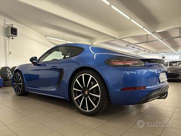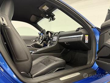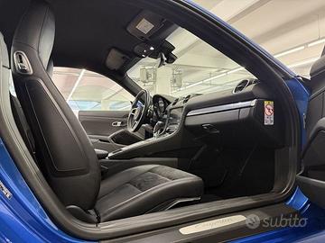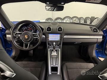 DEK:[10238637] FULL SERVICE PORSCHE , DOPPIE CHIAVI , COLORE BLU ZAFFIRO METALIZZATO SEDILI IN ALCANTARA E PELLE NERA LISTA OPTIONAL : KBV - Serbatoio da 64 litri GE - Porsche Doppelkupplung (PDK) SIH - Riscaldamento sedili GRA - Adaptive Cruise Control compreso Porsche Active Safe (PAS) FW - Porsche Active Suspension Management (PASM) con assetto di guida ribassato WSS - Fascia grigia sulla parte superiore del parabrezza QJ1 - Rete portaoggetti nel vano piedi lato passeggero HSW - Fari principali Bi-Xenon compreso il Porsche Dynamic Light System (PDLS) MFA - Indicatore limiti di velocità EPH - ParkAssist anteriore e posteriore SZU - Logo "718" NAV - Modulo di navigazione per Porsche Communication Management (PCM) FM - Tappetini AGA - Impianto di scarico sportivo (inclusi terminali in color argento)
