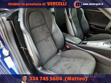 I sedili, così come il volante e la plancia sono in alcantara e in condizioni eccellenti con dettagli e inserti in carbonio. La dotazione comprende, oltre ai sensori di parcheggio anteriori e posteriori e al ParkAssist con retrocamera, tutti i più recenti dispositivi di sicurezza come il cruise control, il Porsche Side Impact Protection System (POSIP) e il Porsche Stability Management (PSM) con ABS dotato di funzioni frenanti supplementari.