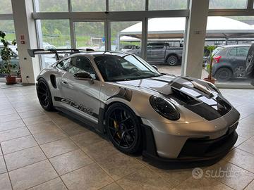 Mod. GT3 RS - G1C Cambio a doppia frizione Porsche Doppelkupplung (PDK) a 7 rapporti - 42 Pacchetto interni Weissach con ampi elementi in pelle e Race-Tex in nero e argento GT - 04I Pacchetto Weissach - 0I2 Serbatoio carburante da 90 litri - 1LQ Porsche Ceramic Composite Brake (PCCB) - 1NX Cerchi verniciati in nero satinato - 2UH Sistema di sollevamento asse anteriore - 56R Cerchi GT3 RS alleggeriti in magnesio forgiato da 20/21 pollici - 5XK Alette parasole in Race-Tex - 6A9 Pacchetto Club Sport - 8JU Fari principali a LED Matrix oscurati con Porsche Dynamic Light System Plus (PDLS Plus) - 8VH Luci posteriori Exclusive Design - 9VL BOSE Surround Sound System - ASR Logo laterale "Weissach RS" a colori sull'alettone posteriore Blu Indaco - KA2 Telecamera posteriore - P14 Specchietti interni ed esterni ad oscuramento automatico con sensore pioggia integrato - QQ2 Pacchetto Light Design - QR9 Riconoscime
