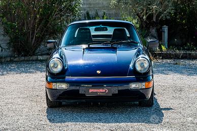 Porsche 911 (964) Carrera 4 Cabriolet, allestimento Total Blue, colore Nachtblau metallizzato con selleria in pelle totale blu e capote blu. In condizioni eccellenti, sempre tagliandata Porsche, con Service Book ufficiale, doppie chiavi e ultimo importante tagliando completo eseguito da meno di 300 chilometri. Porsche Approved, attestato di storicità ASI, doppie chiavi. In visione e prova presso la nostra sede, previo appuntamento.