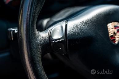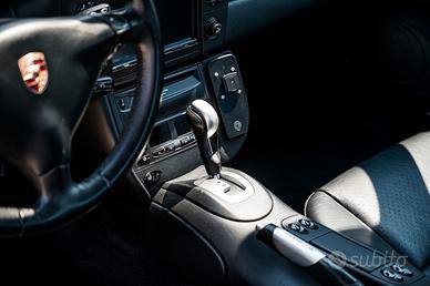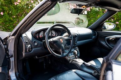 Porsche 996 Cabriolet, colore Ascotgrau Metallic, selleria in pelle nera, cambio Tiptronic.