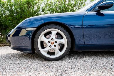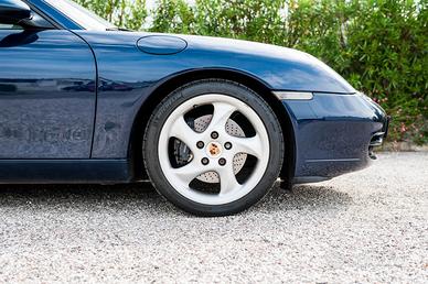 Porsche 911 996 Carrera 2, colore Lapisblau Metallic, selleria in pelle blu, hard top e capotte blu.