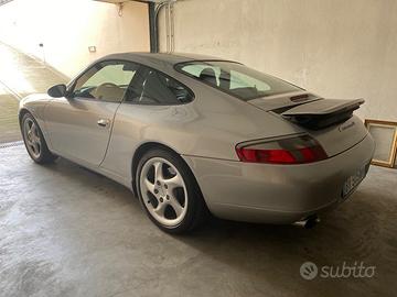 Porsche 911 (mod.996) Carrera 4 (4 ruote motrici) 301 cv, anno 2001, iscritta Asi già su libretto, esente bollo, assicurazione agevolata, grigio metallizzato ,cambio manuale, interni in pelle blu, radio originale , fendinebbia clima automatico , cielo in alcantara, collettori in acciaio inox (ho anche gli originali perfetti ed i suoi terminali) cerchi turbo e alcuni lavori eseguiti : nuovo alternatore , tamponi ammortizzatori, guarnizioni iniettori, gomme praticamente nuove, tagliandi e altri lavori fatturati. Auto usata sempre pochissimo, sempre garage, carrozzeria perfetta solo due piccoli segni, perfettamente funzionante 195.000 km reali ! . Rivalutazione futura e interesse storico. Richiesta 32.000 trattabili se realmente interessati