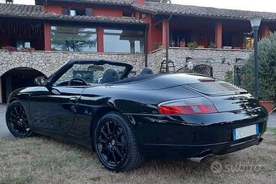 Porsche 911 Carrera 2 Cabrio, serie 996 3400cc, 300cv, auto full optional, manuali, hard top, cerchi gt3 (quelli in foto) più quelli originali di serie, inserti Carbonio, fari Litronic con lava fari, Navigatore PCM con telefono veicolare funzionante, volante 3 razze, auto in splendide condizioni. Service Book completo, fattura Porsche per sostituzione motore nuovo a 105.000Km (ora ne ha 138.000), doppie chiavi, tutti i manuali e corredi presenti. ASI e CRS a libretto con riduzione del bollo al 50%, assicurazione agevolata, disponibile a qualsiasi prova e verifica anche con vostro meccanico di fiducia, auto seguita da Carboni a Roma, vendo esclusivamente per passaggio a 997.