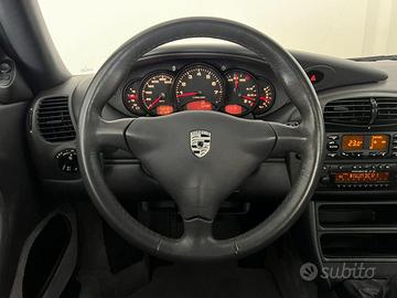 Chilometraggio: 149900 Condizioni: usato Immatricolazione: 03/2000 Tipologia: Coupè Carburante: Benzina Tipo di cambio: Manuale ABS, Airbag, Airbag laterali, Airbag Passeggero, Alzacristalli elettrici, Antifurto, Autoradio, Cerchi in lega, Chiusura centralizzata, Climatizzatore, Controllo automatico clima, ESP, Fari Xenon, Fendinebbia, Immobilizzatore elettronico, Interni in pelle, Pneumatici estivi, Regolazione elettrica sedili, Sedile posteriore sdoppiato, Servosterzo, Specchietti laterali elettrici - Porsche 911 Carrera Coupé 3.4 – motore boxer 6 cilindri da 221 kW - Cambio manuale – configurazione originale - Tagliandi ufficiali fino 80700km La Porsche 911 Carrera Coupé 3.4 rappresenta una delle configurazioni più pure della serie 996, con trazione posteriore e cambio manuale, soluzione che mantiene un’impostazione di guida diretta e coerente con la tradizione del modello. Sotto il cofano è presente il motore boxer 6 cilindri da 3400 cc e 221 kW, abbinato a trasmissione manuale, capace di offrire erogazione lineare e buon equilibrio tra prestazioni e fruibilità. Il chilometraggio attuale è di 150000 km. La vettura si presenta in configurazione classica, con carrozzeria blu scuro e interni in pelle nera. L’impostazione generale è orientata alla semplicità funzionale, senza eccessi di optional, mantenendo una buona coerenza con l’originalità del modello. Internamente troviamo plancia essenziale con strumentazione analogica a cinque quadranti, climatizzatore automatico e impianto audio originale Porsche. Dotazione principale: - Fari Xeno - Interni in pelle - Climatizzatore automatico - Autoradio originale Porsche - Cerchi in lega originali - Airbag guida e passeggero - Alzacristalli elettrici - Chiusura centralizzata - Sistema lavafari Il prezzo esposto comprende il tagliando preconsegna e la revisione, se necessaria. Il passaggio è escluso. Su sitoweb trovi la galleria fotografica completa e dettagliata di ogni nostro veicolo