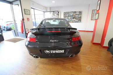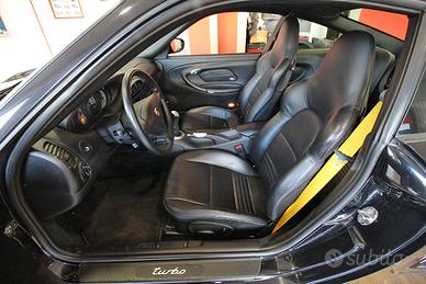 Macchina superlativa una supercar vera. Nello specifico parliamo di una turbo molto particolare: 996 turbo è dotata del pacchetto X50: distribuito ufficialmente da Porsche alla modica cifra di 17 mila euro, questo kit di potenziamento portava sulla Turbo alcune soluzioni presenti sulla GT2, tra cui due turbocompressori più grandi (KKK K24), due intercooler maggiorati, alberi a camme con profilo rivisto, nuovi collettori più spinti, una nuova centralina con limitatore portato a 7.400 giri al minuto, sedili sportivi e altre piccole chicche, il tutto per portare la potenza totale dell'auto a 450 cv, la coppia a 620 spaventosi Nm e la velocità massima di questo proiettile a 307 km/h. Questo veicolo si presenta in ottimo stato con 65000 km originali e certificati da sempre tagliandata regolarmente. Interni sono in ottime condizioni. La carrozzeria è in buono stato, mai incidentata ma troviamo presenza di tracce di sassolini sul paraurto anteriore e sul cofano, ma preferiamo farla vedere nello stato attuale per trasparenza in modo tale da far vedere che questa 996 non è mai stata smontata e dopo visione ed in fase di trattativa sarà presa una decisione sul lavoro da svolgere. Gli interni sono pari al nuovo. Il motore è brillante e potente, con accessori di serie degno di un auto di lusso. Airbag laterali (POSIP) guidatore e passeggero. Alzacristalli elettrici con funzione tip-up e tip-down. Antenna incorporata nel parabrezza. Apertura dall'interno del tappo serbatoio. Apertura dall'interno del vano bagagli. Appoggiatesta integrati. Cambio manuale a 6 marce. Cerchi da 18'' High Tech a razze cave. Chiusura centralizzata. Climatizzatore automatico. Computer di bordo. Contachilometri parziale. Correttore assetto fari. Fari litronic. Filtro a carboni attivi per abitacolo. Inibitore d'avviamento integrato nella chiusura centralizzata. Interno tut