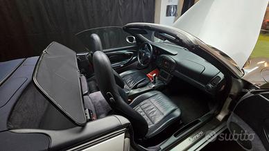 La vettura , RARISSIMA SOFT TOP BLU ED INTERNI IN PELLE TOTAL BLU, appartenuta solo ad un proprietario, immatricolata nel 1999, splendida, omologata 2+2 quindi 4 comodi posti, Navigatore cartografico VDO originale, sedili riscaldati, KIT FRANGIVENTO ORIGINALE, FULL SET, kit vivavoce, HARD TOP IN TINTA, clima automatico, ASI con C.R.S. usufruisce di tutte le agevolazioni fiscali e assicurative vigenti, corredata di originali interni in pelle di colore nero, cambio manuale , autoradio, tetto apribile elettrico, triple chiavi, libretti uso e manutenzione regolari Porsche, tagliandata regolarmente presso centro ufficiale Porsche, cruise control, caricatore CD Porsche ecc ecc full optional, fantastici cerchi in lega, fari Xeno, auto “matching numbers e matching color ” tutto corrispondente all’originale, la vettura presenta solo 109.800 km circa da nuova ed il suono vellutato del motore e l’agevole inserimento del cambio, nonché le silenziose sospensioni confermano questa informazione, tagliandata regolarmente, revisionata e gommata nuova, pronta per essere un piacevole oggetto da collezionare oppure per l’immediato utilizzo su strada.
