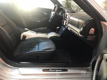 Porsche 911 Targa 996 Restyling del 11/2002 motore aspirato boxer a sei cilindri da 3.6 litri 320 CV (235 kW).trasmissione automatica Tiptronic con comandi al volante, tetto in vetro totale apribile elettronicamente, trazione posteriore.Interno sportivo in pelle totale con sedili a regolazione elettrica e riscaldabili, sistema di infotainment avanzato. Sospensioni anteriori McPherson indipendente, Sospensioni posteriori Multi-Link indipendenti,freni anteriori e posteriori con dischi ventilati maggiorati,cerchi in lega da 18 versione speciale con 4 pneumatici maggiorati nuovi, Velocità max 280 kmh, Accelerazione 0-100km/h 5,2 sec,appena eseguito tagliando completo di olio e tutti i filtri, sistema di scarico sportivo omologato, Alzacristalli elettrici con funzione tip-up e tip-down, Climatizzatore automatico,sistema di navigazione satellitare, climatizzatore automatico,chiusura centralizzata, 10 airbag,correttore assetto fari, Fari poliellissoidali xeno, Filtro a carboni attivi per abitacolo, Immobilizzatore elettronico, Inibitore d'avviamento integrato nella chiusura centralizzata, Protezione antiurto laterale nelle porte, Retrovisori reg. dall'interno, Sistema di allarme a raggi infrarossi, Servosterzo, Specchietti esterni elettrici, Spoiler posteriore automatico, Vetri atermici, Volante in pelle nera regolabile assialmente con comandi integrati, Porsche Stability Management (PSM) Assetto sportivo, ecc... DISPONIBILE A QUALSIASI PROVA, CHIAMARE DAVIDE3495831653 angelo3202286629NO MAIL ASTENERSI PERDITEMPO.