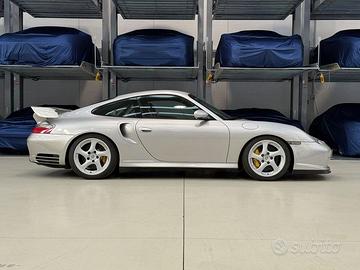 - esterno: Arctic Silver Metallic- interno: Stoffa NeraLa GT2 è conosciuta per essere molto dura e pura da guidare, senza i sistemi elettronici di trazione e controllo tipici delle Turbo moderne: potenza spinta alle ruote posteriori senza assistenze, quindi richiede controllo e abilità.La 996 GT2 Clubsport, una delle 911 più estreme e rare prodotte da Porsche, è una versione particolarmente focalizzata sulla pista della già potentissima Porsche 911 GT2 basata sulla generazione 996 (prodotta dal 2001 al 2005). È un’auto costruita per piloti esperti che vogliono prestazioni estreme e sensazioni forti, mantenendo però l’omologazione per strada.• Motore: 6 cilindri boxer 3.6 L twin-turbo “Mezger”, derivato da quello della 911 Turbo ma potenziato per la GT2. Potenza 462 CV (Mk1) • Trasmissione: cambio manuale a 6 rapporti con trazione posteriore. • Accelerazione: 0–100 km/h in circa 4,1 s e velocità massima oltre 315 km/h.• Telaio: più leggero rispetto alla Turbo, con assetto ribassato e set-up più rigido per migliorare performance e handling. Il Pacchetto Clubsport aggiunge elementi da vera auto da pista rispetto alla GT2 “normale”: Sedili a guscio leggeri, imbottiti in Nomex ignifugo Cinture di sicurezza a 6 punti Roll-bar interno posteriore Interruttore stacca batteria / cut-off, estintore e predisposizioni da corsa Riduzione di peso e trim interno minimalista per pista.Questa configurazione non solo aumenta la sensazione di guida “motorsport”, ma la avvicina molto a un’auto da competizione pur mantenendo l’omologazione stradale.Le GT2 in generale sono piuttosto rare: circa 1.287 GT2 996 prodotte in totale, di cui solo circa 70 con pacchetto Clubsport di fabbrica come quella qui proposta.note:Sebbene sia stato fatto ogni ragionevole sforzo per assicurare l'accuratezza di queste informazioni invitiamo a contattarci per maggiori delucidazioni.La descrizione degli optional non ha alcun valore contrattuale, ma solo informativo.Siamo a Gerenzano -