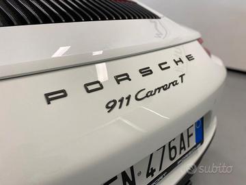 Motore e Prestazioni il cuore della vettura è il classico sei cilindri contrapposti (Boxer), che in questa versione beneficia della sovralimentazione biturbo introdotta con il restyling 991.2.Architettura: 6 cilindri Boxer, biturbo, montato a sbalzo sul posteriore.Cilindrata: 2.981 $cm^3$.Potenza Massima: 272 kW (370 CV) a 6.500 giri/min.Coppia Massima: 450 Nm, disponibili costantemente tra 1.700 e 5.000 giri/min.Velocità Massima: 293 km/h (Manuale) / 291 km/h (PDK).Accelerazione 0-100 km/h: 4,5 secondi (Manuale) / 4,2 secondi (PDK con Launch Control).La Carrera T si distingue dalla Carrera standard per diverse chicche meccaniche volte a migliorare l'agilità.Trasmissione: Di serie un cambio manuale a 7 rapporti con rapporti accorciati e leva del cambio più corta. In opzione il doppia frizione PDK a 7 rapporti.Trazione: Posteriore, con differenziale autobloccante meccanico posteriore (di serie solo sul manuale).Assetto PASM: Sistema di regolazione elettronica degli ammortizzatori, ribassato di 10 mm rispetto alla Carrera standard.Asse Posteriore Sterzante: Disponibile come optional (raro per il modello base della gamma 911), per migliorare stabilità e inserimento in curva.Freni: Pinze fisse monoblocco in alluminio a 4 pistoncini, dischi autoventilanti e forati da 330 mm su entrambi gli assi. Nonostante l'anima analogica, la tecnologia supporta attivamente la dinamica del veicolo.Pacchetto Sport Chrono: Incluso di serie, permette di variare la risposta di motore, cambio e assetto tramite il selettore sul volante.Porsche Torque Vectoring (PTV): Sistema che distribuisce la coppia in modo variabile sulle ruote posteriori per ottimizzare la trazione.Infotainment: Porsche Communication Management (PCM) con schermo touch, navigazione online e Apple CarPlay.Illuminazione: Fari Bi-Xenon con luci diurne a LED a 4 punti. 💰Veicolo Finanziabile 💰 ☎️+39 371 394 8568